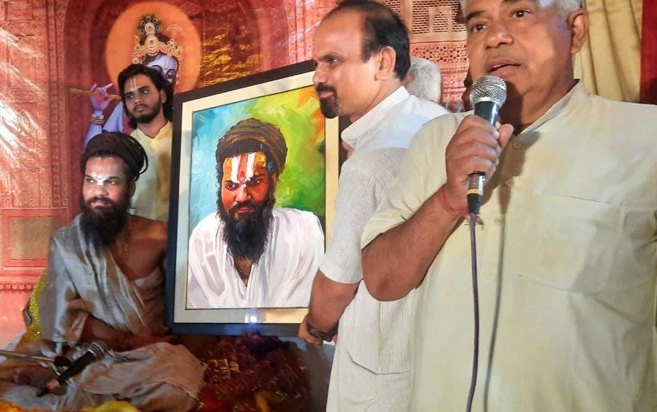 जींद: जींद के ऐतिहासिक जयंती देवी मंदिर परिसर में चल रही भागवत कथा के समापन समारोह में वाराणसी से पधारे कथा व्यास महंत राघव दास जी को संस्कार भारती के प्रांत चित्रकला प्रमुख दीपक कौशिक ने महंत श्री को उनका चित्र बनाकर भेंट किया। महंत राघव दास जी ने कहा कि ईश्वर के विशेष कृपा पात्रों को कला विशेष उपहार के रूप में मिलती है । कला साधना भी योग का सर्वोत्तम स्रोत है। उन्होंने दीपक कौशिक द्वारा बनाए गए चित्र की मुक्त कंठ से प्रशंसा की और उन्हें अपने श्री हाथों से विशेष रूप से सम्मानित किया। युवा चित्रकार दीपक ने बताया कि हमारा सौभाग्य है कि ऐसे संतों का चित्रण करने का अवसर मिला जिनका पूरा जीवन भगवान की भक्ति को समर्पित है ऐसे संतों के चित्रण से कला भी धन्य हो जाती है। भागवत कथा के आयोजकों ने दीपक कौशिक का आभार व्यक्त किया। इस मौके पर भाजपा नेता सुभाष शर्मा, जिला संयोजक सांस्कृतिक प्रकोष्ठ मोहित बब्बर, आयोजक मंडल, सुनील शांडिल्य, राजेंद्र शर्मा, अजय गर्ग, इंद्रजीत कालरा, सोमवीर मलिक इत्यादि प्रमुख रूप से उपस्थित रहे।